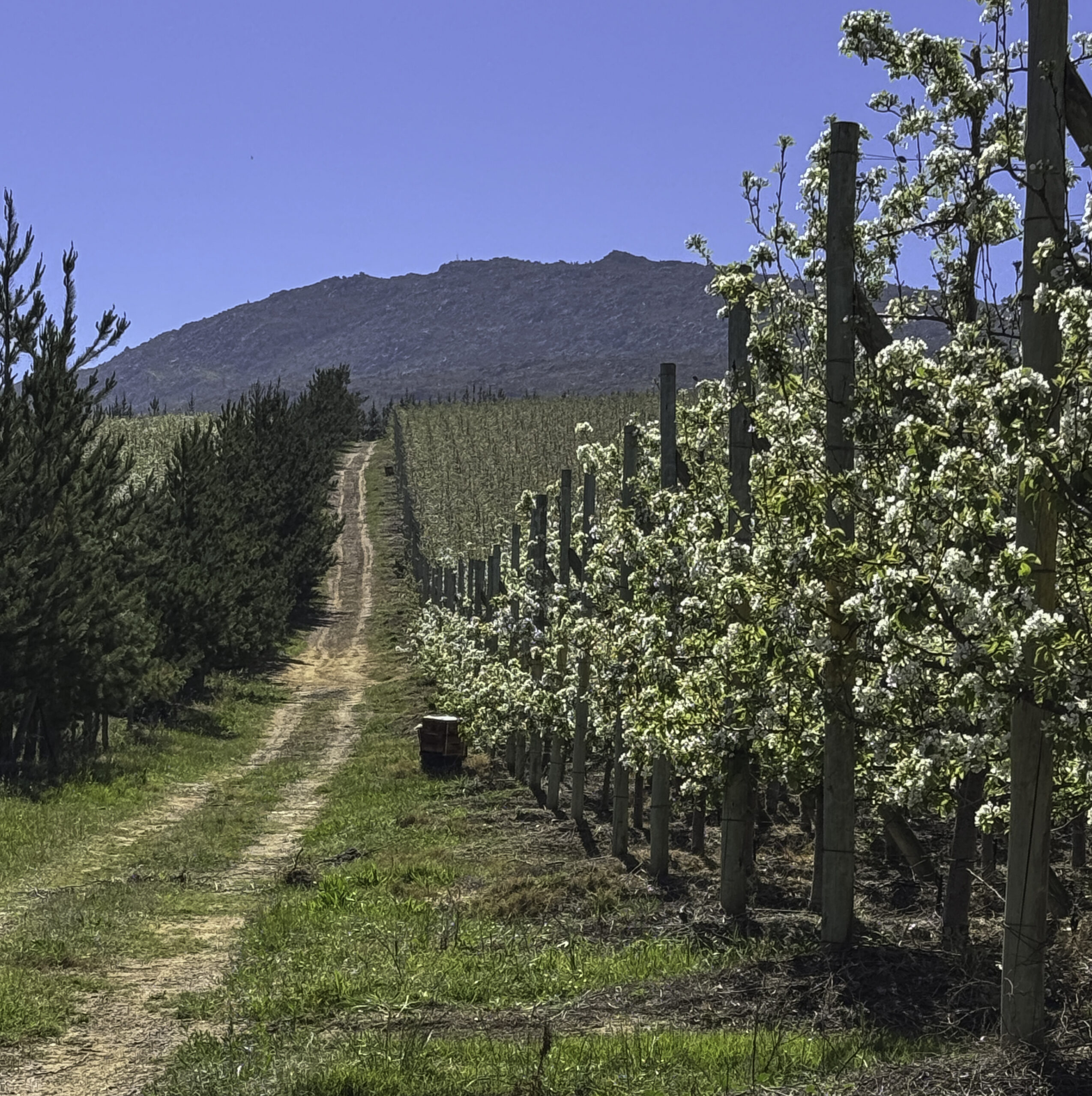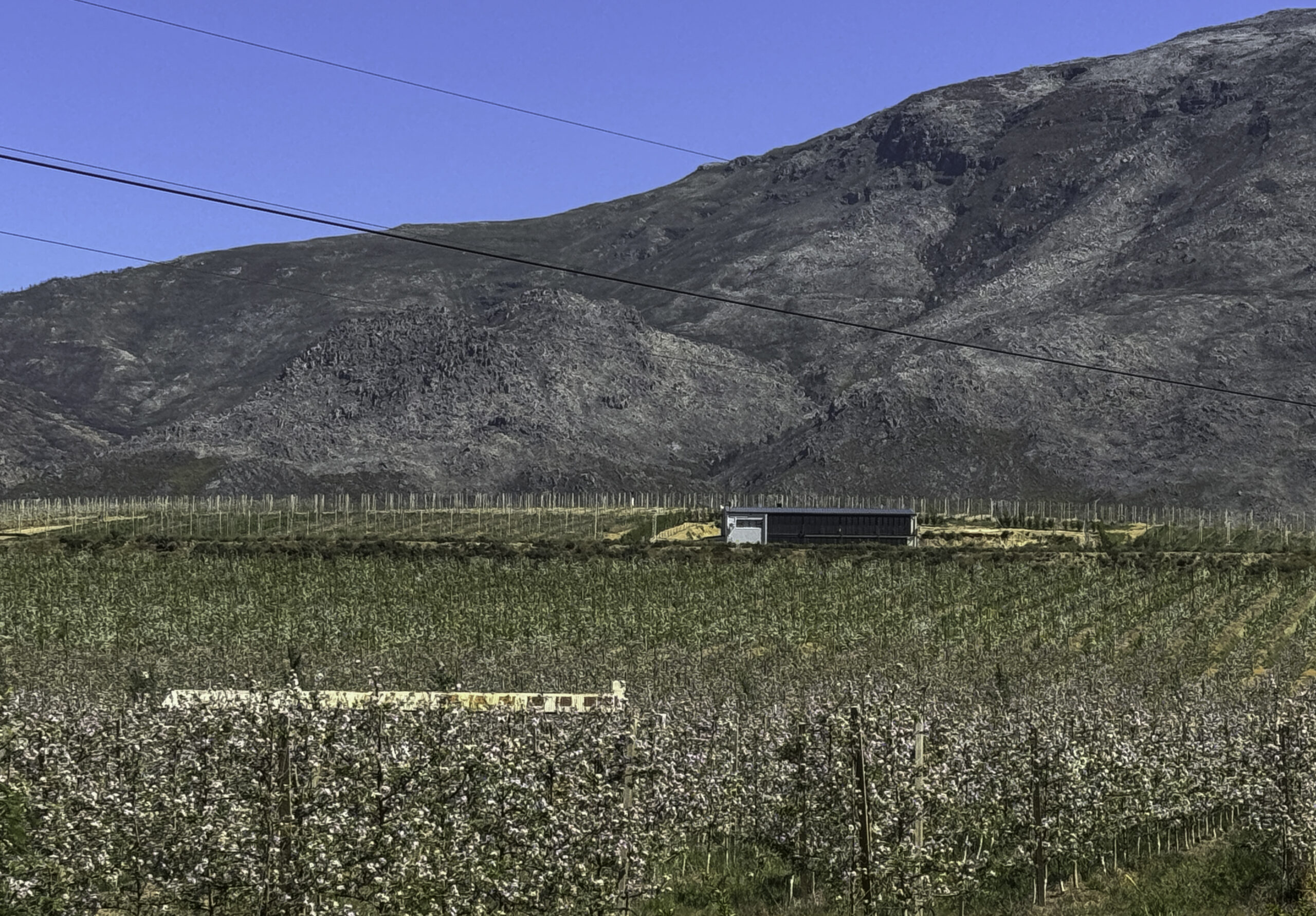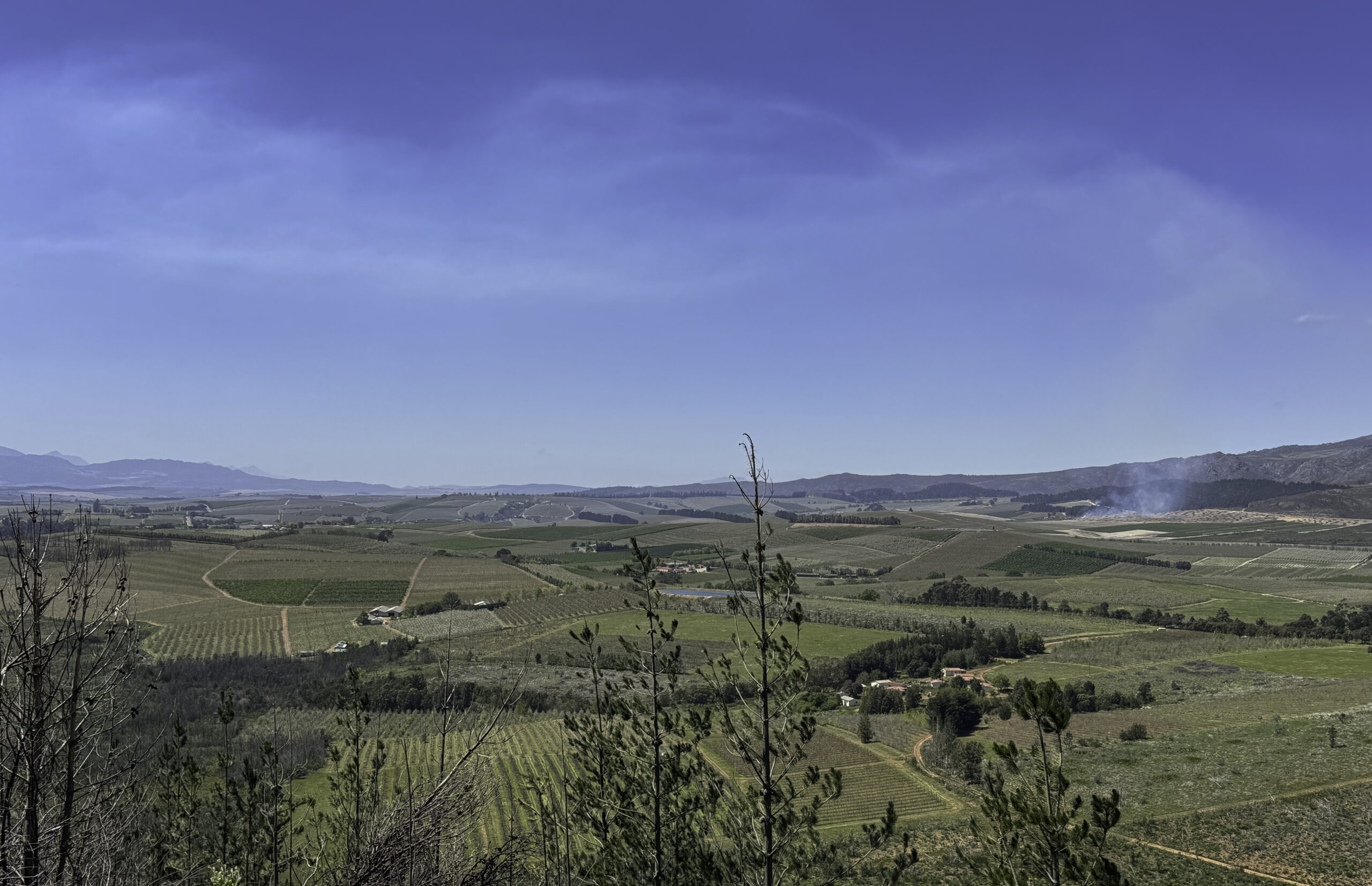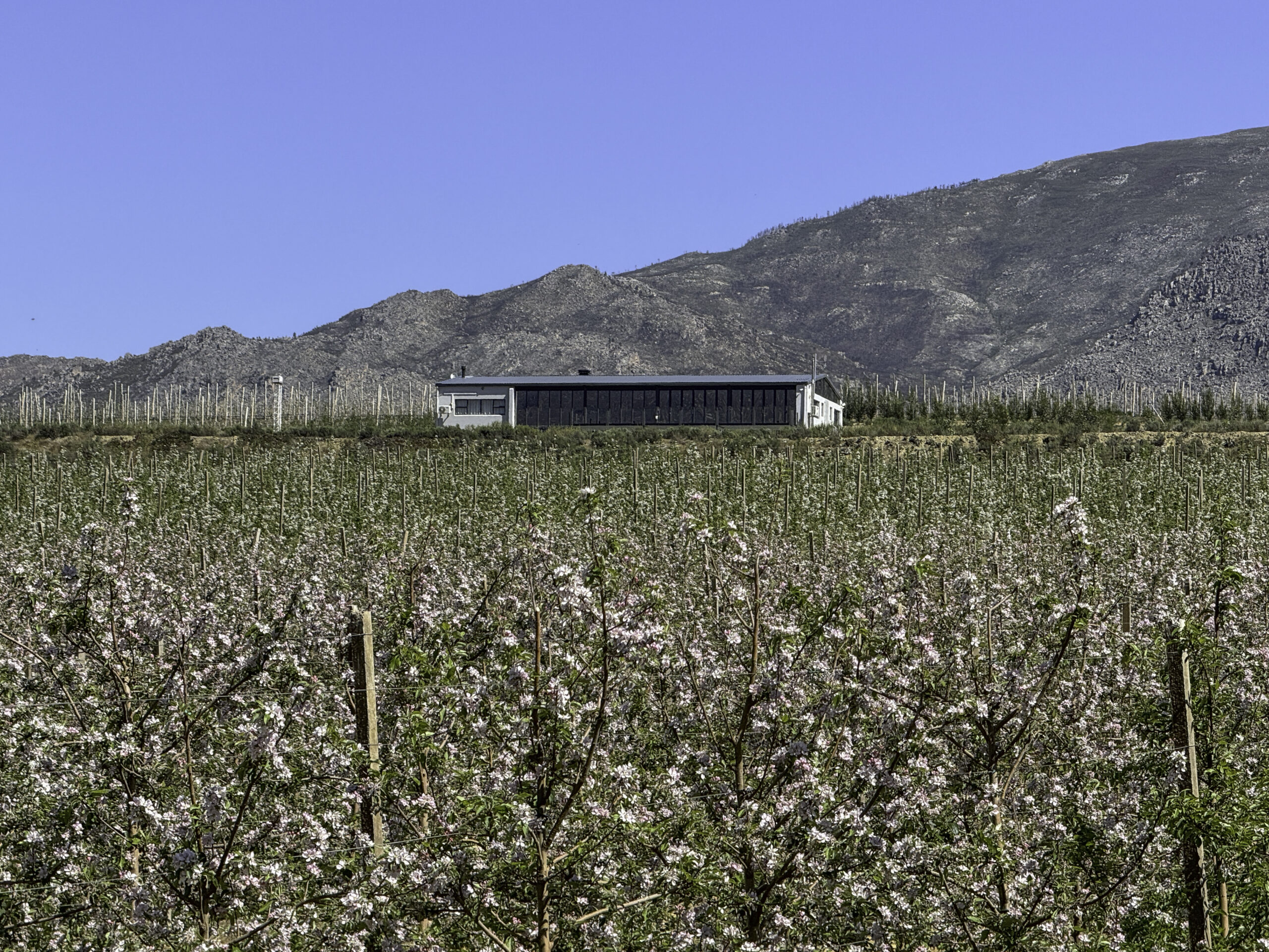 The micro-climate of the valley drastically changed with the building of the Theewaterskloof Dam in the 1970s. Thus, the Villiersdorp Valley changed its face from mainly grain farming (as in most of the Overberg) to the production of deciduous fruit (apples, pears) and viticulture (wine production).